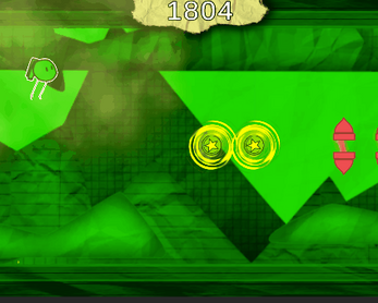 Every time you jump through a dimension, there is a power up behind the door. Each power up affects how you can earn points in that dimension.
